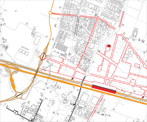 L’area, ora periferica, diventerà un nodo importante con la concorrenza di alta velocità, linea ferroviaria metropolitana, superstrada tangenziale, a cui si aggiunge una zona industriale esistente e la fiera cittadina. Si è così reso necessario coordinare tutti questi elementi funzionali fornendo le indicazioni per costruire un nuovo quartiere a uso misto, commerciale, residenziale e direzionale che si avvantaggerà di una posizione geografica eccezionale che avrà come riferimento economico non solo Reggio Emilia ma l’intera valle Padana.